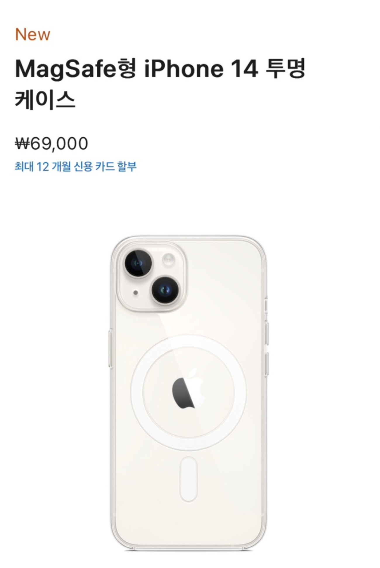 애플 공홈에서 판매하는 투명에플케이스의 경우 가격이 거의 7만원입니다. 다이소 맥세이프 케이스의 가격은 5천원입니다. 가격이 13배 이상 차이납니다. 소비자 입장에서는 금방 노랗게 변하는 투명케이스는 다이소껄 바꿔가며 쓰는 것도 좋아보입니다. 물론 그립감이나 내구성은 조금 차이가 있겠죠.
