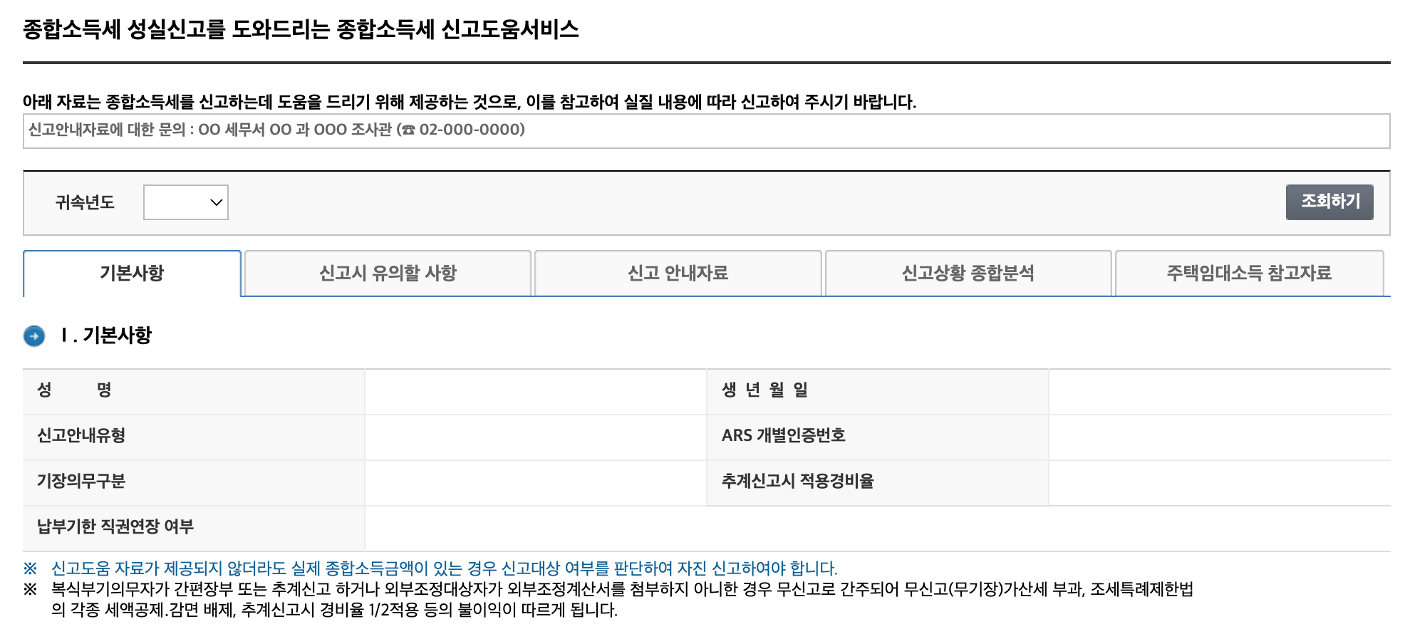 기장의무에 대한 경우를 확인할 수 있고 경비율에 따라 유리한 세액공제를 확인할 수 있습니다. 무엇보다 담당 세무관 전화번호가 있어서 자세히 물어볼 수 있습니다. 이 곳을 확인한 후 홈텍스에서 종합소득세 신고를 하시면 됩니다.