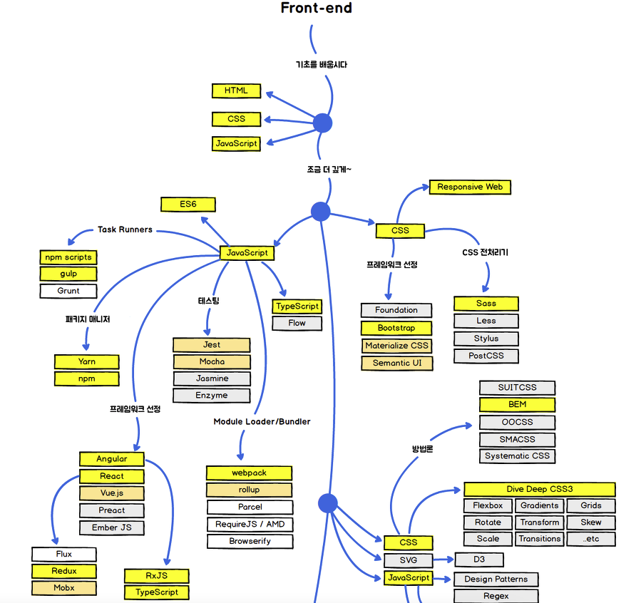 웹 개발 강좌의 로드맵을 보면 화려합니다.