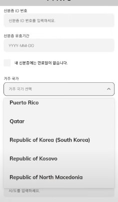 보통 영문성함, 국가, 거주지 주소, 신분증, 면허증, FACE인식으로 증명하며 최소 AI, 매크로, 봇이 아닌지 검증하기 위해 적용됩니다.