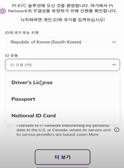파이 브라우저 접속 -> kyc.pi 선택 -> 여권 이름과 같은 영문 이름 입력, 한국사람이면 중간이름은 넣지 않음, 거주국가 Republic of Korea -> 5분 후 완료