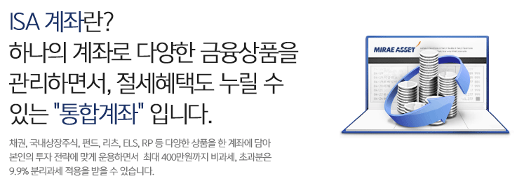 보통 배당세금은 15.4% 원청징수하게 되어 있는데 ISA를 가입한 경우 400만원까지는 비과세 그 다음으로 9.9% 분리과세로 상대적으로 저렴한 세율을 가져갈 수 있습니다.