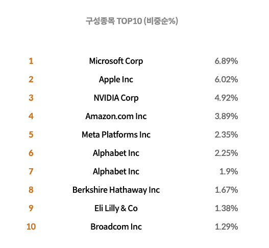 보통 마이크로소프트와 애플을 제일 큰 비중으로 가지고 있고 말그대로 운용사이기 때문에 보유종목을 계속 바꿀 수 있습니다. 보통 미국의 유명 지수추종 ETF인 QQQ나 SPY을 추종하긴하지만 상황에 맞게 조정할 수 있습니다. 참고사항입니다.