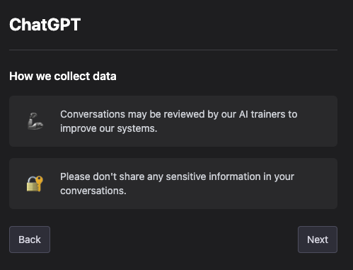 대화 데이터를 인공지능 시스템을 향상하는데 사용하겠다고 명시하고 주의사항을 알려주네요.