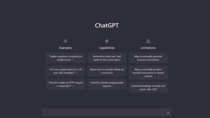 We’ve trained a model called ChatGPT which interacts in a conversational way. The dialogue format makes it possible for ChatGPT to answer followup questions, admit its mistakes, challenge incorrect premises, and reject inappropriate requests. ChatGPT is