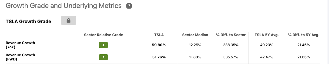 하지만 성장을 나타내는 Growth부분을 보면 달라집니다. 사실 순이익이 높아지면 PER가 줄어듭니다. 투자자가 많아져서 시가총액이 올라가면 또 다른 말이지만 성장률은 확실하게 테슬라 같은 성장기업에게 중요합니다.