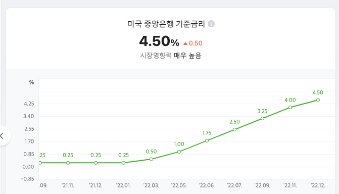 미국 금리는 현재 인플레이션 상황에 따라 계속 올라가는 상황입니다. 하지만 올해 들어서 금리를 계속 인상하자는 매파(Hawkish) 의원들이 금리동결을 의미하는 의견들을 내고 있습니다. 이에 따라서 미국금리는 최대 5%까지 오를 것으로 예상됩니다. 사실상 피크를 찍은 것이죠.