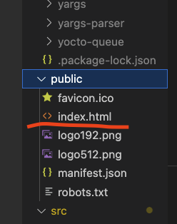 호스팅을 할 때 public 파일의 index.html 파일이 보여지게 됩니다.