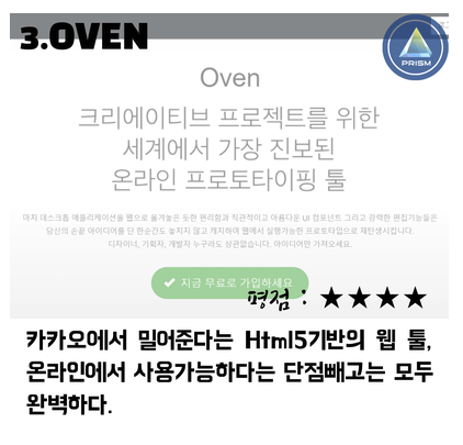 Oven(오븐)은 HTML5 기반의 무료 웹/앱 프로토타이핑 툴입니다. (카카오 제공)