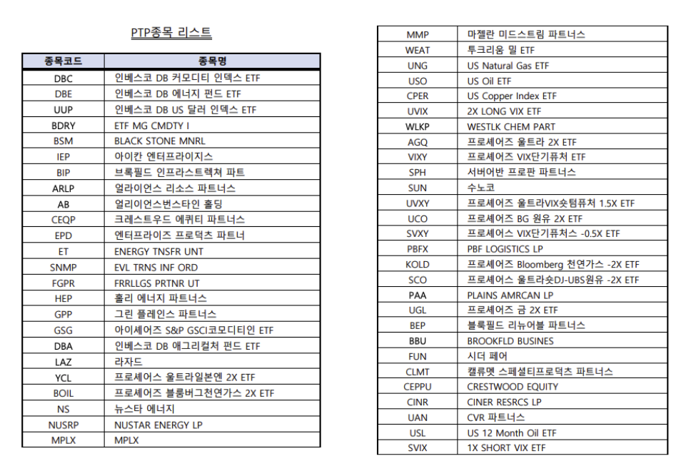PTP에 적용되는 종목? (상세)