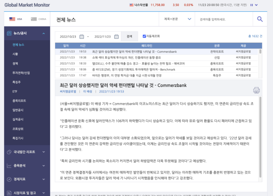실시간 뉴스나 정책, 리포트 분야에는 Global market
